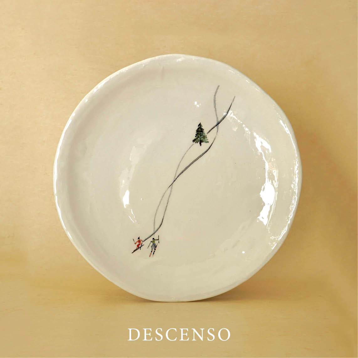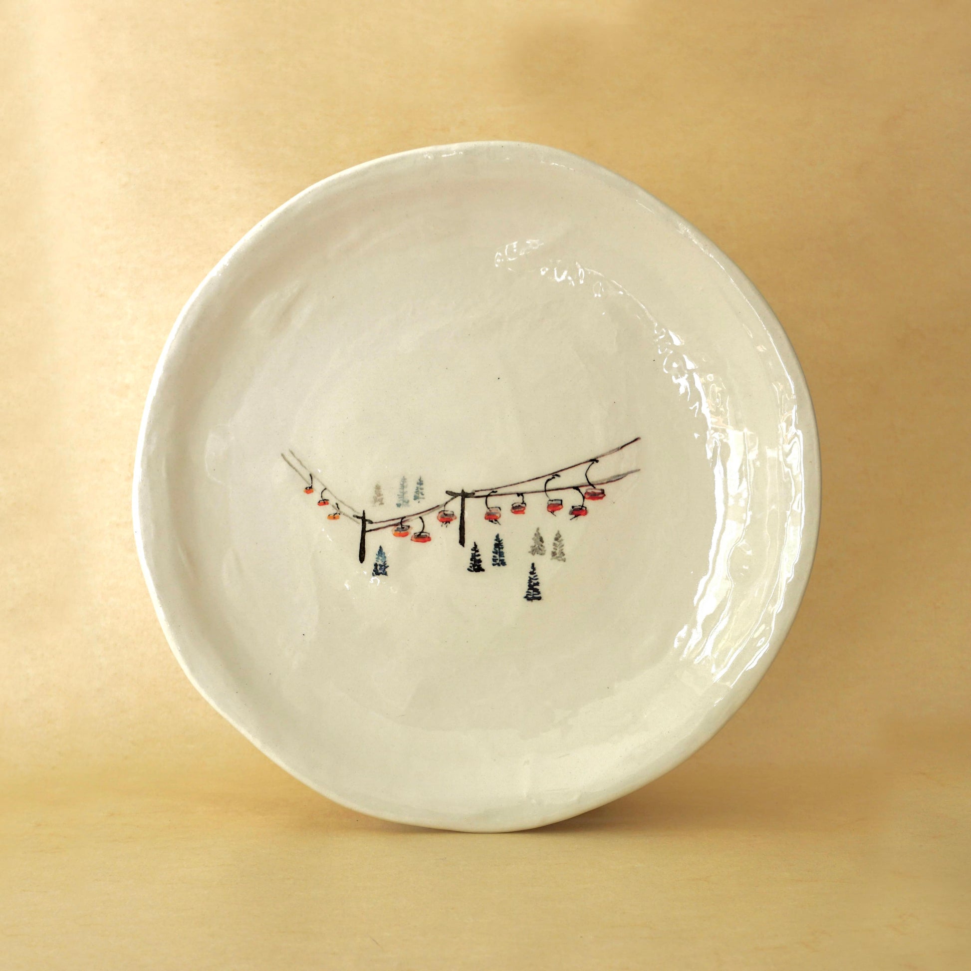 Descubre nuestros platos de postre temática de esquí, una colección exclusiva que combina artesanía, diseño y pasión por la montaña. Cada pieza está elaborada con loza de alta calidad y decorada con delicados dibujos diseñados a mano inspirados en el mundo del esquí: telesillas, pistas de esquí y esquiadores en acción.